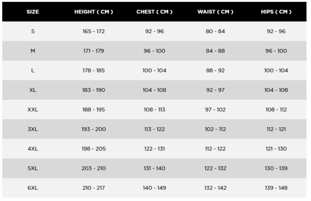 Sizes Guide for Shirt: