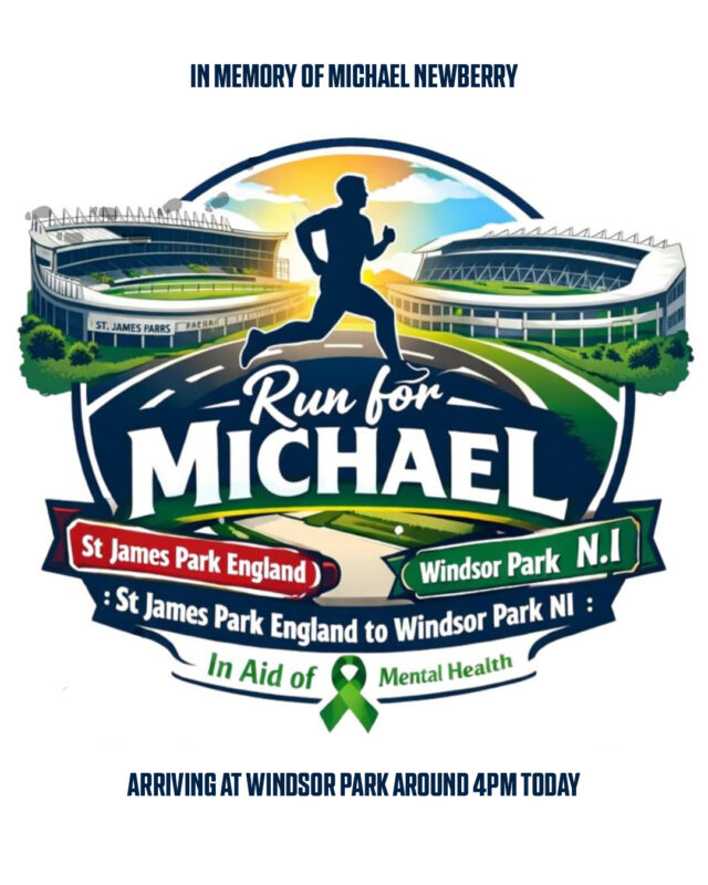 Adrian Salem, brother of our late former player Michael Newberry, has been undertaking an extraordinary challenge this month in Michael’s memory, running from St James’ Park to Solitude and on to Windsor Park to raise awareness and funds for men’s mental health.