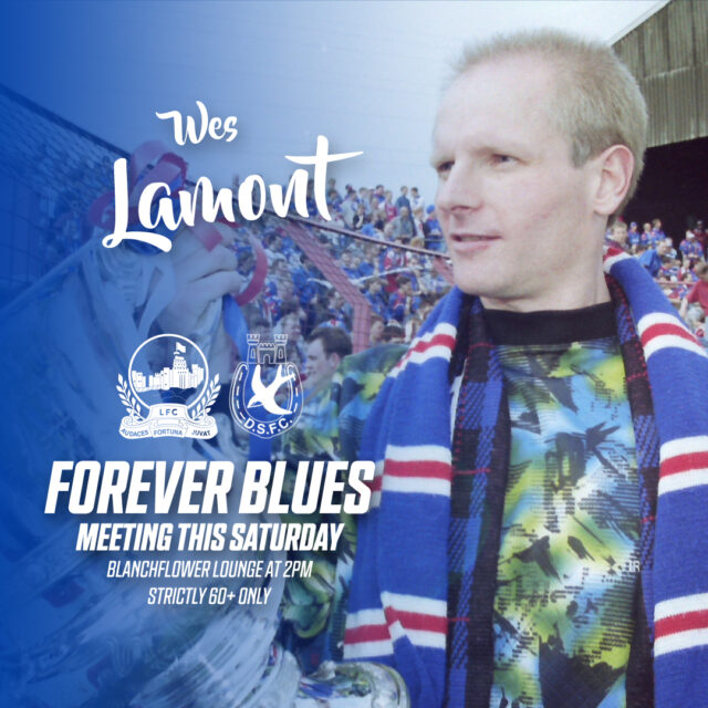 The final Forever Blue meeting of the season will be held in The Blanchflower Lounge at Windsor Park from 2pm on Saturday 12 April 2025. Our guest will be our former goalkeeper from the 1990s Wes Lamont. There will be a Q & A session at the end of the meeting which will finish at approximately 2.30pm. Tea/coffee and biscuits will be provided.