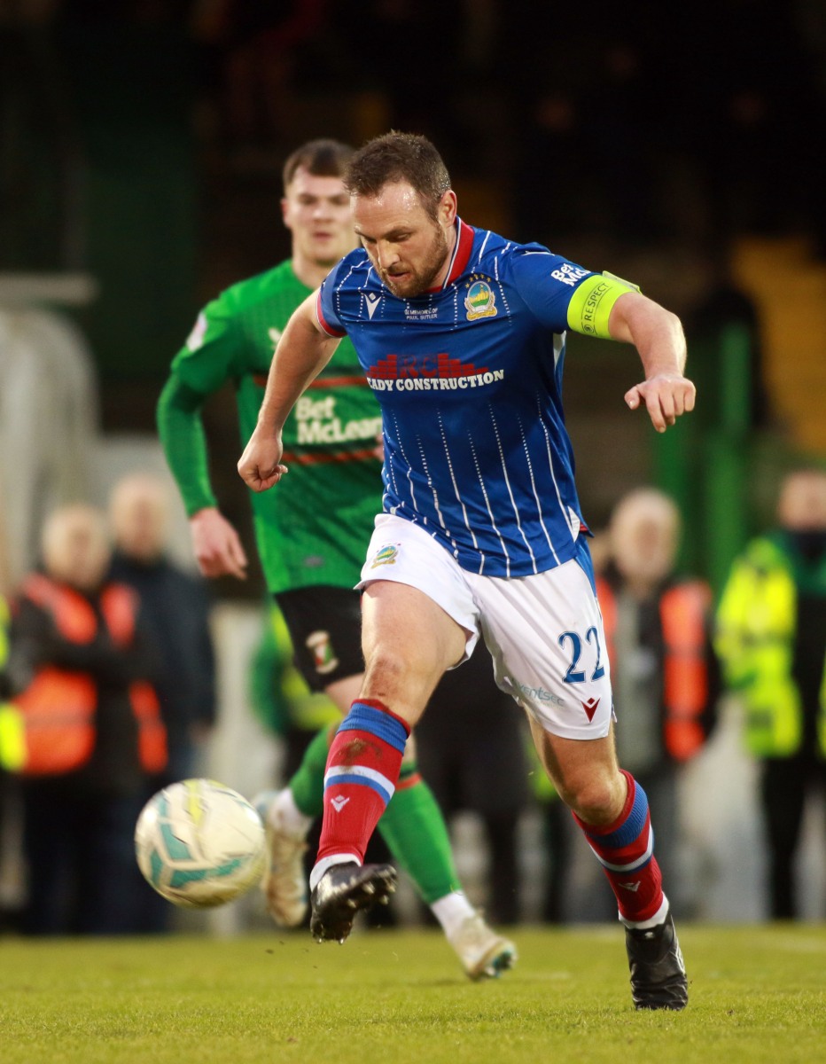 Shields’ booking sees him reach the threshold of five yellow cards in the Sports Direct Premiership this season, meaning he’s now facing an automatic one-match suspension and will miss the Blues’ clash with Larne next Monday evening. Sam Roscoe’s sending off will also trigger a one-match suspension, so he too will miss the match against Larne at Windsor Park.