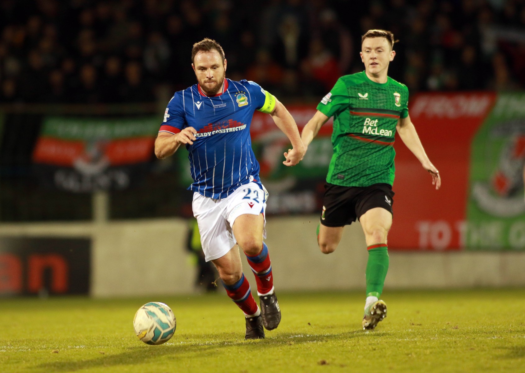 In total there were ten bookings and two red cards in the match but, whilst both teams were totally committed and giving it everything, it was not the kicking match that the booking tally may suggest. Outwith Sam Roscoe, the Linfield players booked were Kirk Millar, Matthew Orr, David Walsh, Scot Whiteside and Chris Shields.