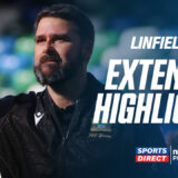 Linfield were knocking on the door for a second goal, going close again shortly after as Kyle McClean’s corner was met and glanced on by Sam Roscoe at the front post and received by Kieran Offord who fired into the side netting at the back post area. It would have been a repeat of the goal which the Blues scored against Shelbourne three days prior.