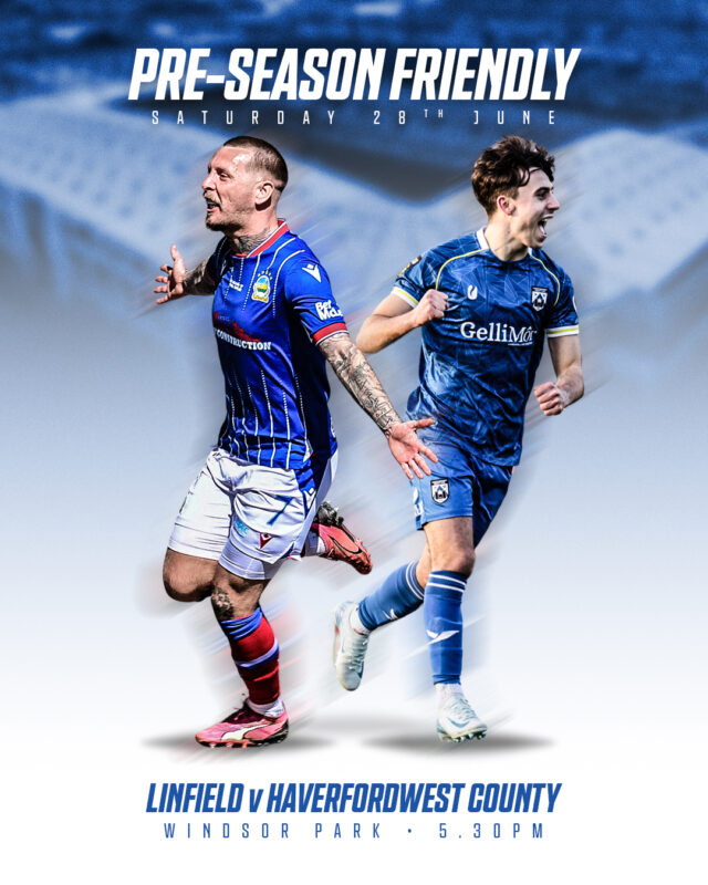 Linfield Football Club are pleased to announce that our first confirmed pre-season fixture will see the Blues take on Haverfordwest County AFC at Windsor Park on Saturday, 28th June, with kick-off scheduled for 5.30pm.