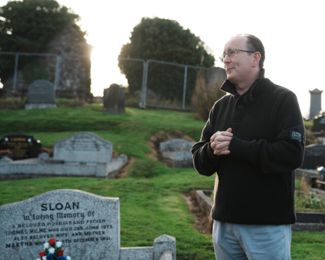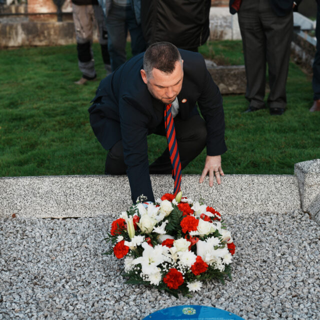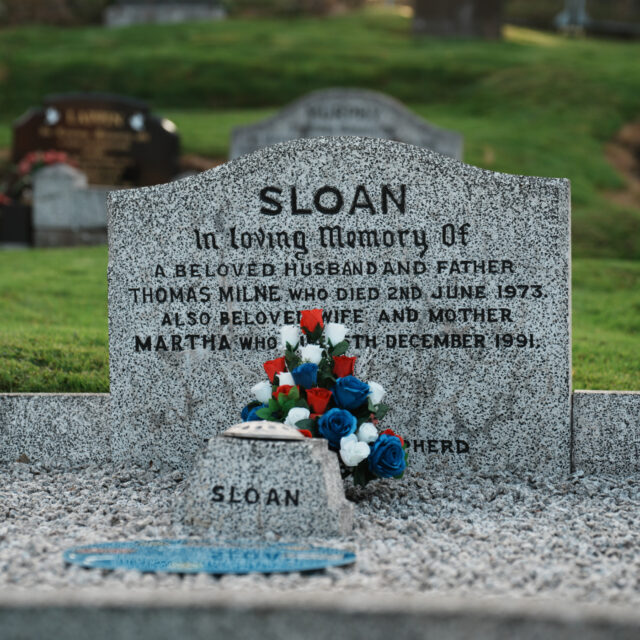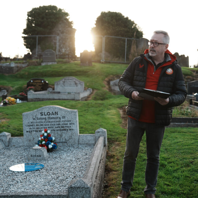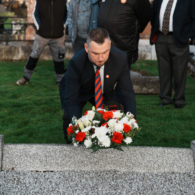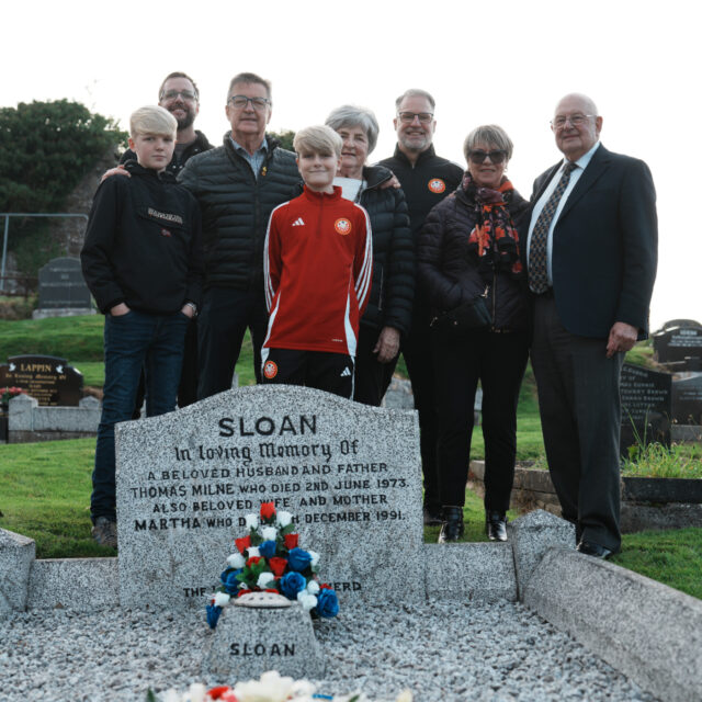 The ceremony was organised by the Linfield Graves Project, with founder Michael Cockcroft welcoming everyone in attendance and sharing Linfield’s version of events from Tommy Sloan’s remarkable footballing career. Michael reflected on Sloan’s achievements and his lasting legacy within the Linfield family.