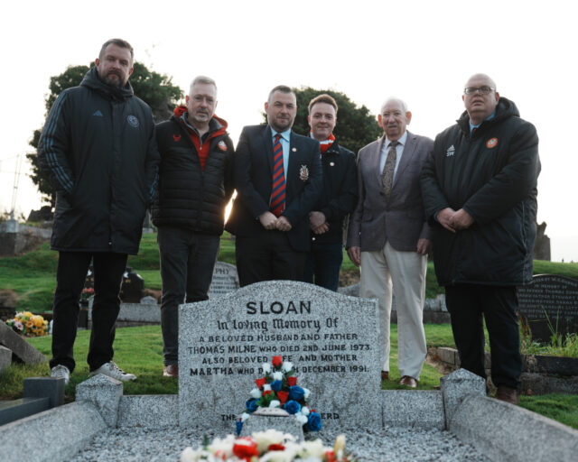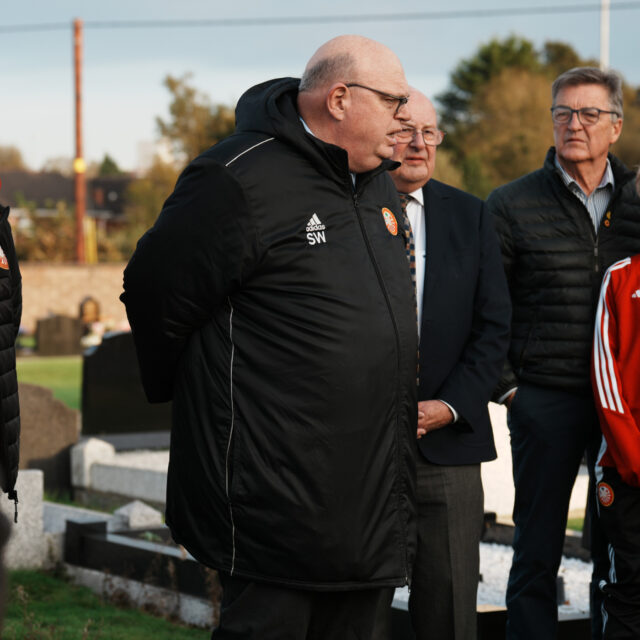 Representatives from both Linfield FC and Portadown FC came together ahead of kick-off for the official unveiling of the restored grave of Tommy Sloan at Seagoe Cemetery, paying tribute to a man who served both clubs with distinction.