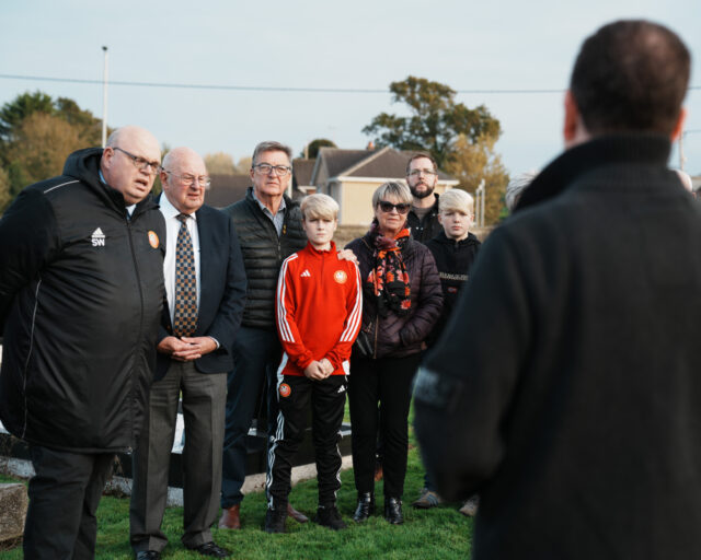 Portadown FC Historian Trevor Clydesdale then spoke warmly about Sloan’s 40 years of dedicated service to the Ports, recounting his immense contribution both on and off the pitch.