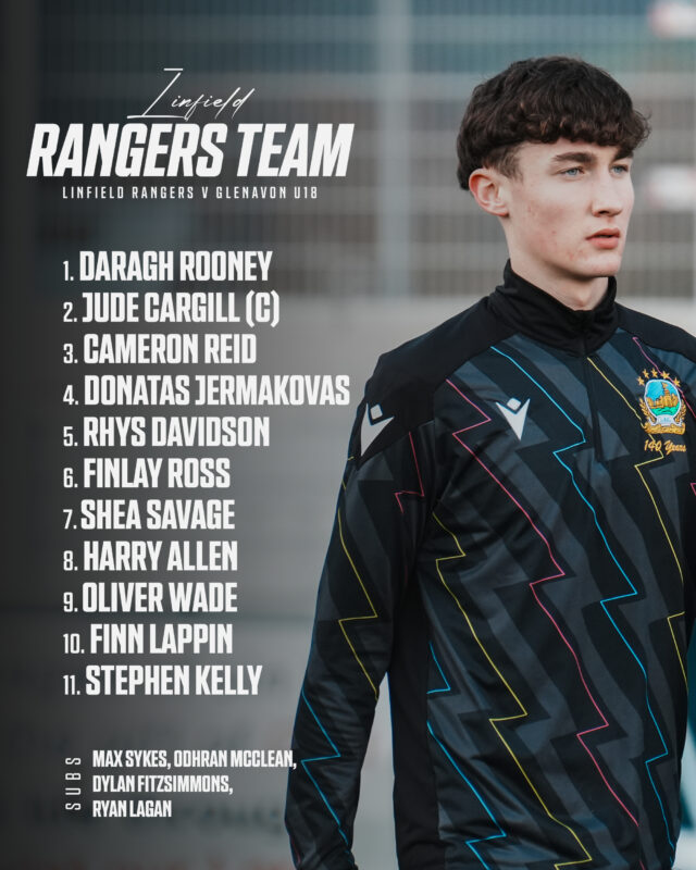 Jamie Mulgrew’s Linfield Rangers team for today’s Harry Cavan Youth Cup Semi-final 🏆