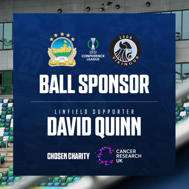 Linfield FC would like to extend our thanks to Linfield Supporter David Quinn for sponsoring the match ball for tomorrow’s UEFA Conference League Qualifier against Vikingur of the Faroe Islands.