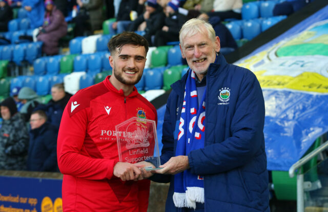 Euan was presented his award at Saturday’s game against Ballymena Utd by Trust member Mervyn Bryson.