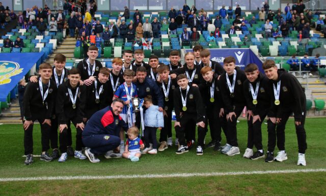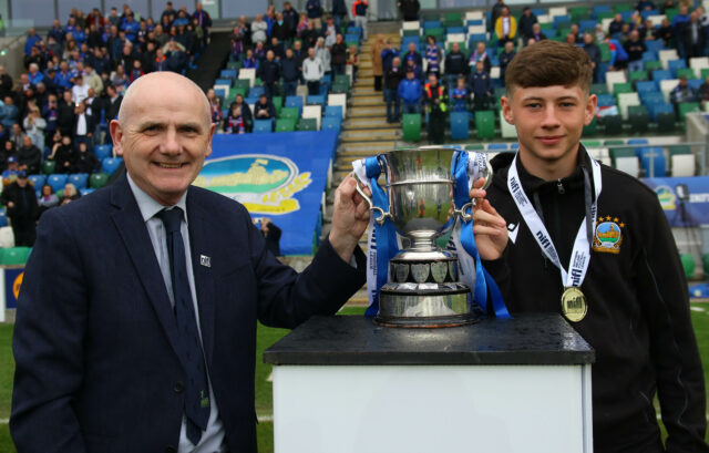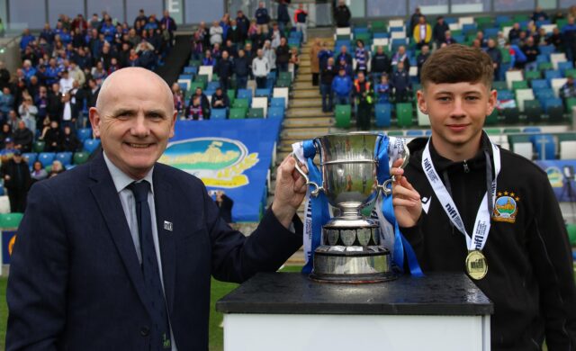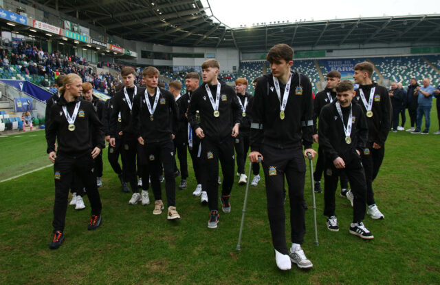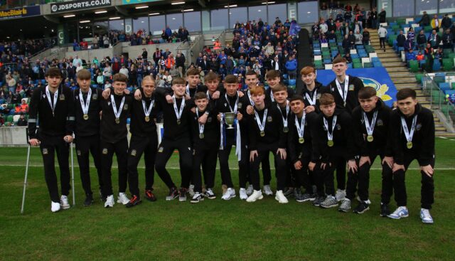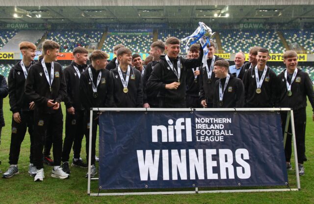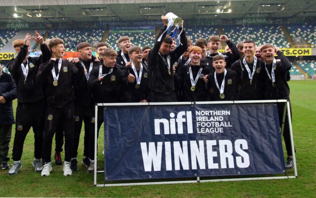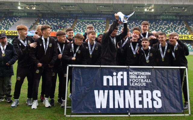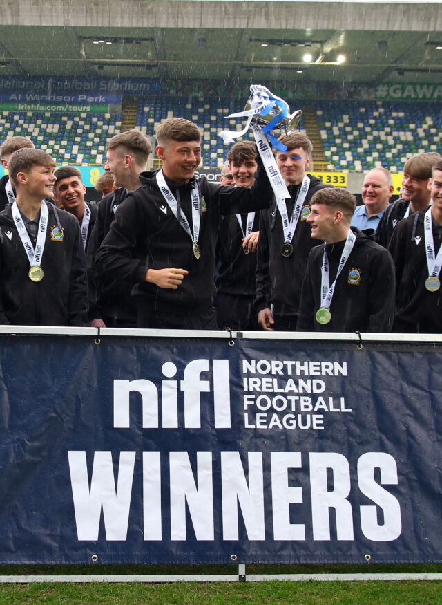 Linfield Swifts were presented with the NIFL Premiership Development trophy on Saturday at the Linfield v Dungannon Swifts game. The Swifts provided the half time entertainment with their trophy presentation followed by a welcomed lap of honour.