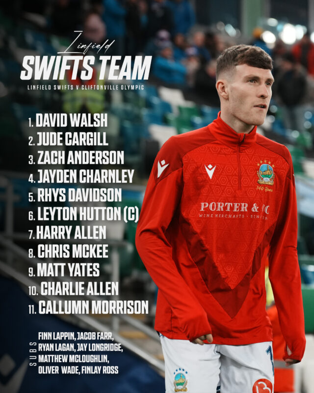 Linfield Swifts team to take on Cliftonville Olympic at Midgley Park.