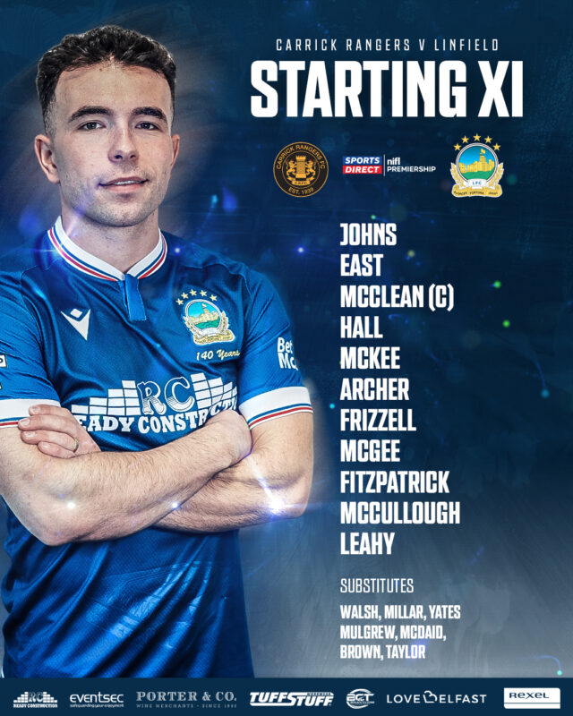 Your Linfield team for tonight’s #SportsDirectPrem clash with Carrick Rangers 📋️🔵 #COYB #AFJ | #SportsDirectPrem