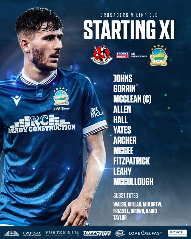 Your Linfield team for today’s #SportsDirectPrem game against Crusaders at Seaview.