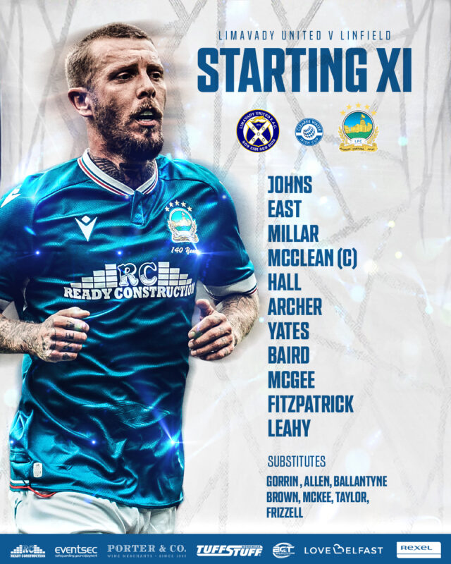 Your Linfield team for tonight’s #ClearerWaterIrishCup tie with Limavady United ⚪️