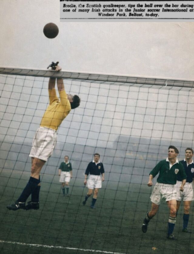 Billy Kennedy also enjoyed notable success on the international stage. On 5th December 1953, he scored a hat-trick against Scotland in a Junior International at Windsor Park. The following year, he was part of the Ireland team that won the British Amateur International Championship — the first time Ireland had achieved this honour.