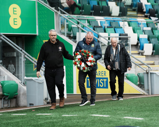 As part of their visit, the group took part in a poignant moment of reflection, laying a wreath in honour of former players who are no longer with us.