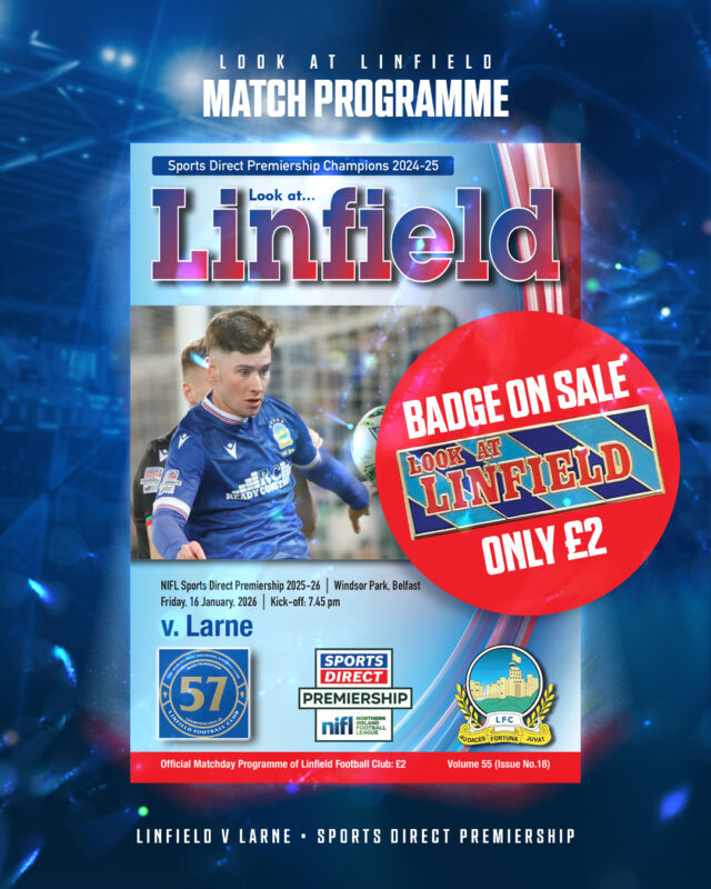 The Look at Linfield Match programme will be available from the stall beside the Superstore ahead of tonight’s game.