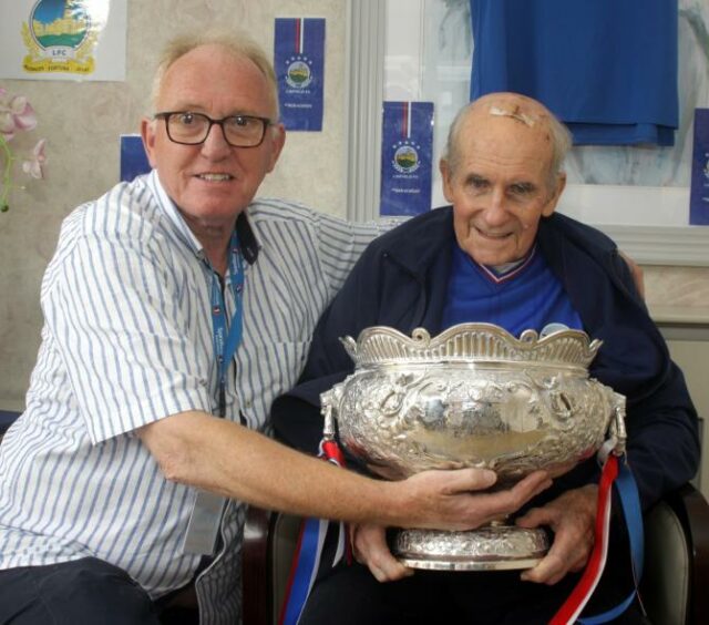 Sadly, in later years, declining health prevented Billy from attending games. He spent his final years at Hamilton Court care home in Armagh city, where he was visited by Linfield director Stephen Shaw who brought the League Cup (formerly the City Cup) to share a special moment with him.