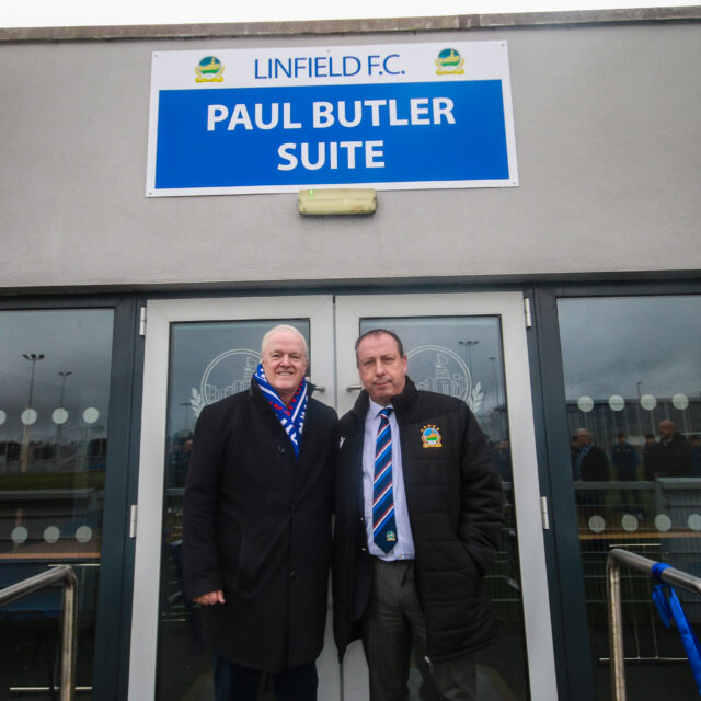 The suite will now stand as a permanent reminder of Paul’s contribution to the club and to everyone who had the privilege of working alongside him. The unveiling was marked by a private and heartfelt ceremony attended by Linfield officials and members of the Butler family, providing an opportunity to reflect on Paul’s life, his service to the club, and the impact he had both on and off the pitch.