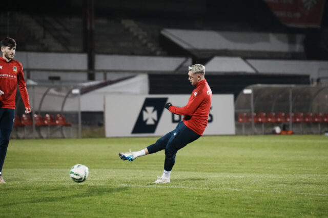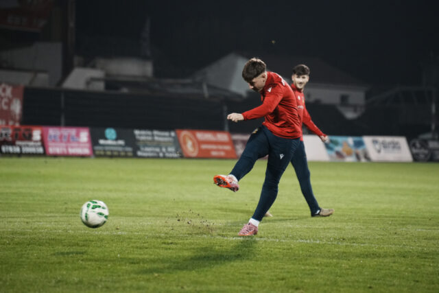 Due to multiple factors such as International call-ups and strong winds, the Blues hadn’t played a League match in three weeks, since they won 3-0 away to Bangor. There was one change from that team as Euan East missed out through injury and was replaced by Ethan McGee.
