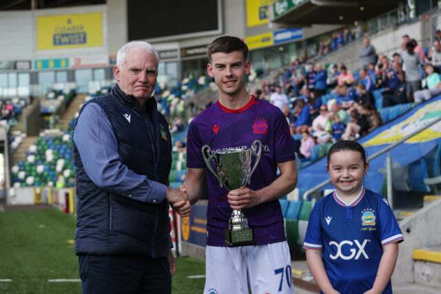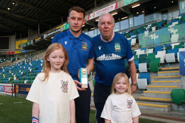 Kyle McClean was presented with the Linfield FC Man of the Match award sponsored by Ronnie Morrison.