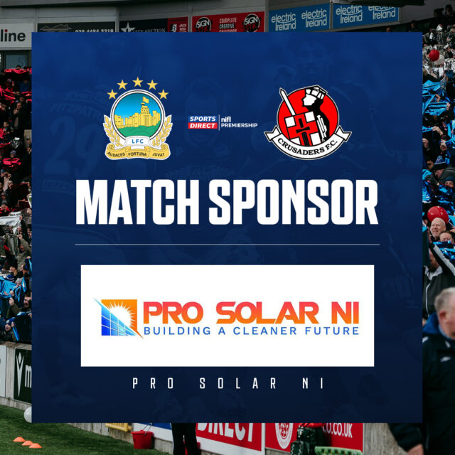 Linfield Football Club are delighted to welcome Pro Solar NI back as the match sponsor for the third time this season for Friday’s Sports Direct Premiership game against Crusaders at Windsor Park.