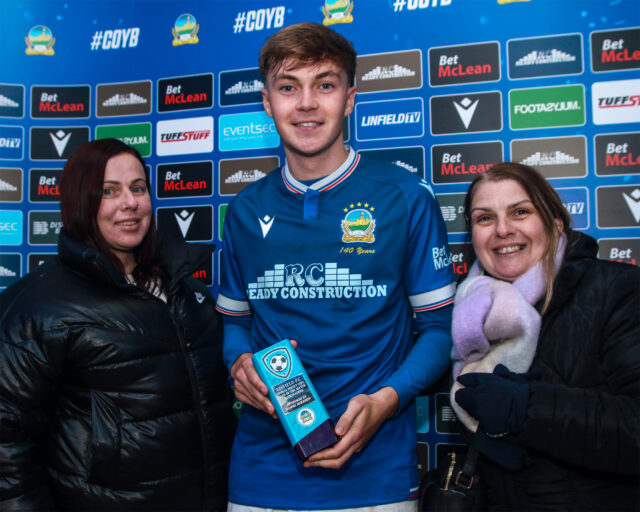 The Man of the Match Sponsored by Ronnie Morrison was presented to Sean Brown by representatives of the Sandy Row business community.