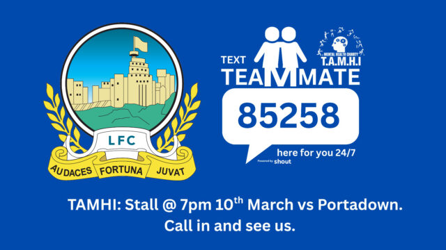 On Tuesday 10th March in the pre-match period before our League game with Portadown, The Blanchflower Lounge at Windsor Park will play host to a session when T.A.M.H.I. will provide information about their ‘Text Teammate’ programme which provides help if you are struggling with your mental health.