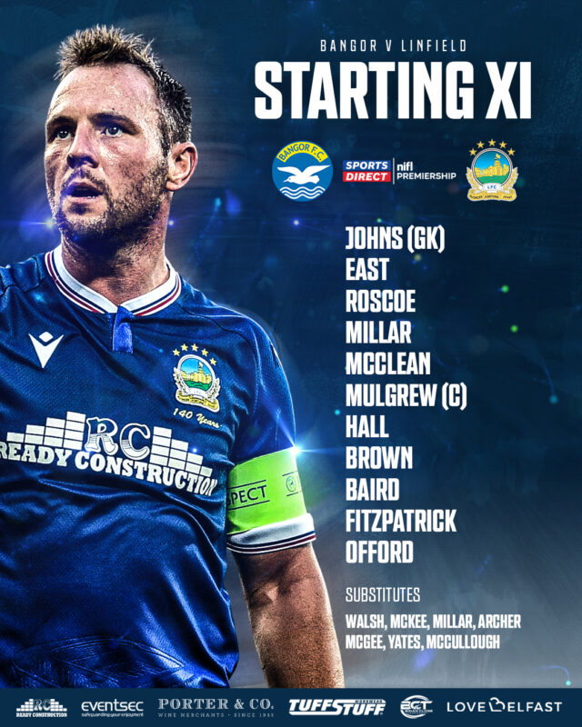 Your Linfield team for tonight’s Sports Direct Premiership match against Bangor at Clandeboye Park 🔵