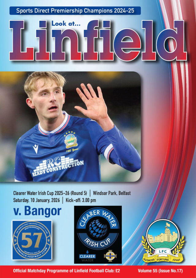 The Look at Linfield match programme for today’s Irish Cup 5th Round match against Bangor will be available from the stall beside the Superstore ahead of today’s game.