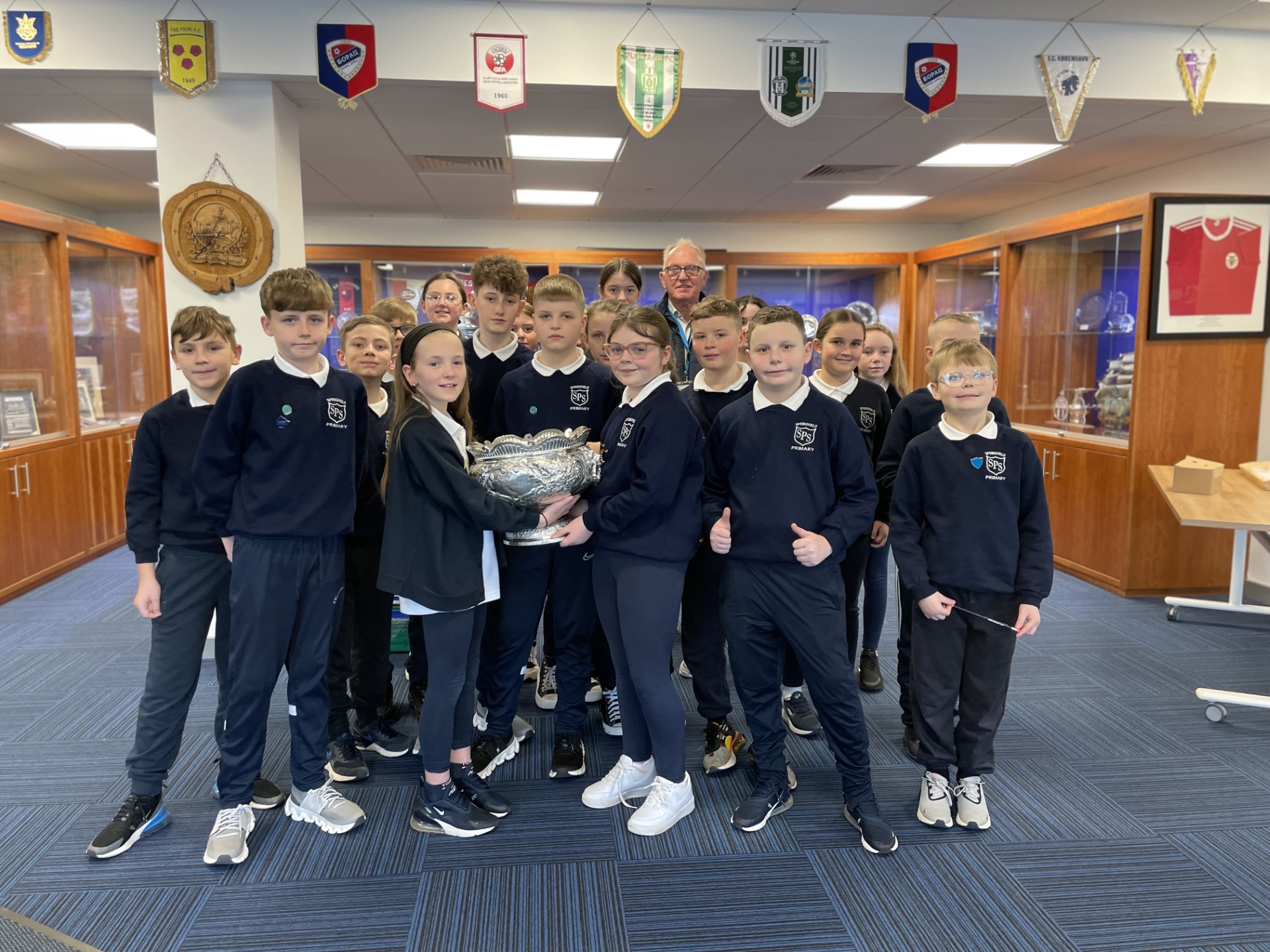 Yesterday we had a visit of 20 pupils from Springfield Primary School to Windsor Park, one of whom plays for the Linfield Women’s’ Academy.They visited the trophy room, boardroom, players’ lounge, home dressing room, away dressing room and press conference room.They are invited back to Windsor Park, as guests of the Club, for our next home game v Ballymena United.There are still a few, free dates available and if any school wishes to visit Windsor Park on a Tuesday afternoon, please contact me at stephen.shaw@linfieldfc.com