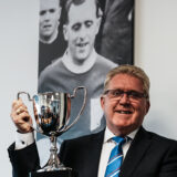 The stunning new trophy was officially presented to the club on Saturday by Tommy’s son and Linfield Vice President, Gary Dickson, in a heartfelt tribute to his father’s incredible contribution to the club.